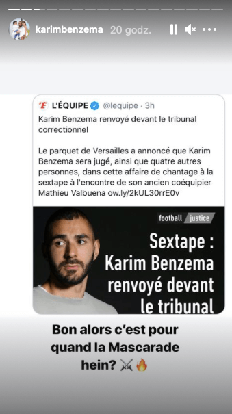 Dobrze, więc kiedy odbędzie się ta maskarada, co? – napisał Benzema na swoim Instastory