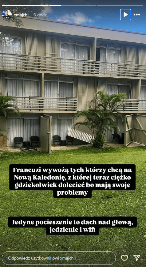 – Francuzi wywożą tych, którzy chcą na Nową Kaledonię, z której teraz ciężko gdziekolwiek dolecieć, bo mają swoje problemy. Jedyne pocieszenie to dach nad głową, jedzenie i wi-fi – dodał w kolejnej relacji piłkarz Górnika.