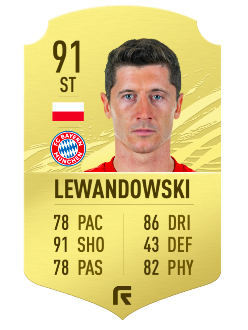 Robert Lewandowski w poprzednim sezonie pokazał się z bardzo dobrej strony, a EA postanowiło docenić jego umiejętności. Jego statystyki strzeleckie urosły aż o 4 oczka! Lewandowski ma 91 punktów ogólnych, co czyni go trzecią najlepszą kartą w FIFIE 21.