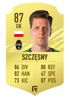 Szczęsny ma za sobą dobry sezon, podczas którego wielokrotnie wychwalały go włoskie media. Nic dziwnego, że EA doceniło jego starania i podniosło jego overall z 86 do 87. Golkiper zajmuje 40. w klasyfikacji ogólnej kart w FIFIE 21.