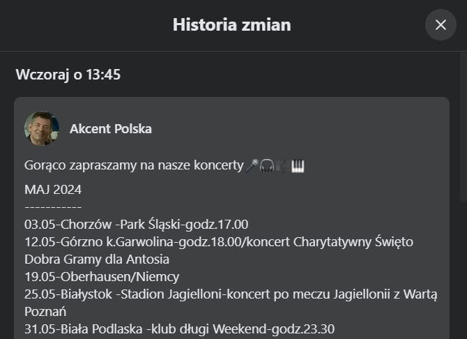 Wspomniany wpis szybko został edytowany. W historii edycji wciąż jednak widnieje informacja o koncercie zespołu Akcent na obiekcie Jagielloni. Póki co w tym temacie nie ma żadnych oficjalnych informacji. Należy to uznać za ciekawostkę, choć z pewnością, coś może być na rzeczy.