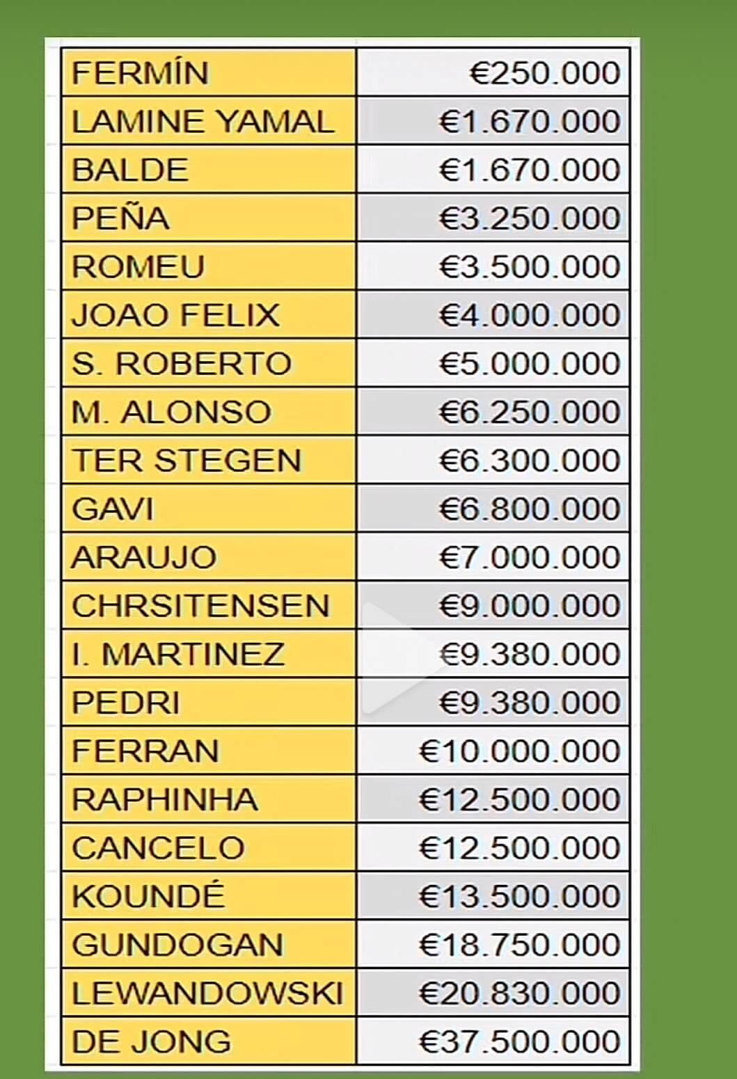 Aktualnie najmniej zarabiają najmłodsi zawodnicy. Część z nich dopiero zaczyna swoją przygodę z profesjonalnym futbolem. Na liście ostatnie miejsce zajął Fermin, który inkasuje rocznie 250 tysięcy euro.