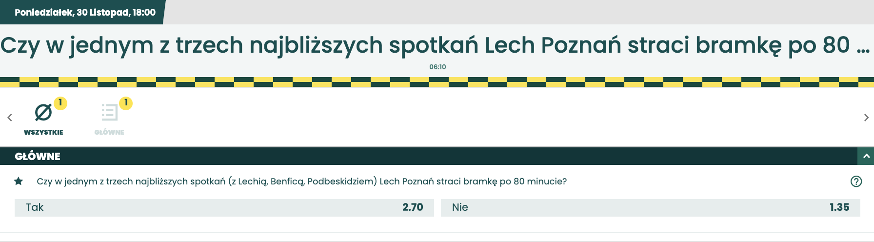 W JEDNYM Z TRZECH NAJBLIŻSZYCH MECZÓW LECH POZNAŃ STRACI BRAMKĘ PO 80 MINUCIE? OBSTAW W BETFAN