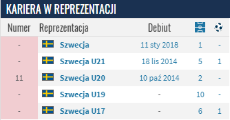 25-latek w przeszłości występował również w młodzieżowych reprezentacji. W seniorskiej kadrze Trzech Koron zadebiutował w styczniu 2018 roku. Oto jego statystyki z poszczególnych szczebli reprezentacji: