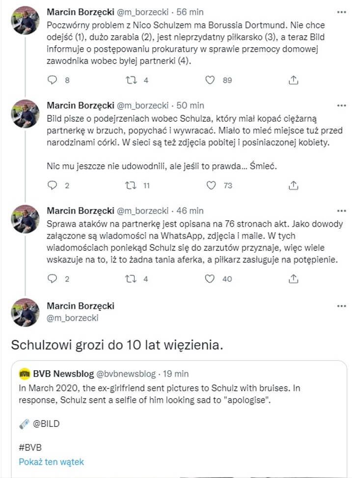 Trolling Trolling Podejrzenia wobec piłkarza Borussii Dortmund. „Miał bić ciężarną partnerkę” sie 6, 2022 przez Adam Dworak Please enable Javascript to view comments. Czytaj kolejny Ligue 1: Piłkarz z rocznika 2006 zadebiutował w PSG