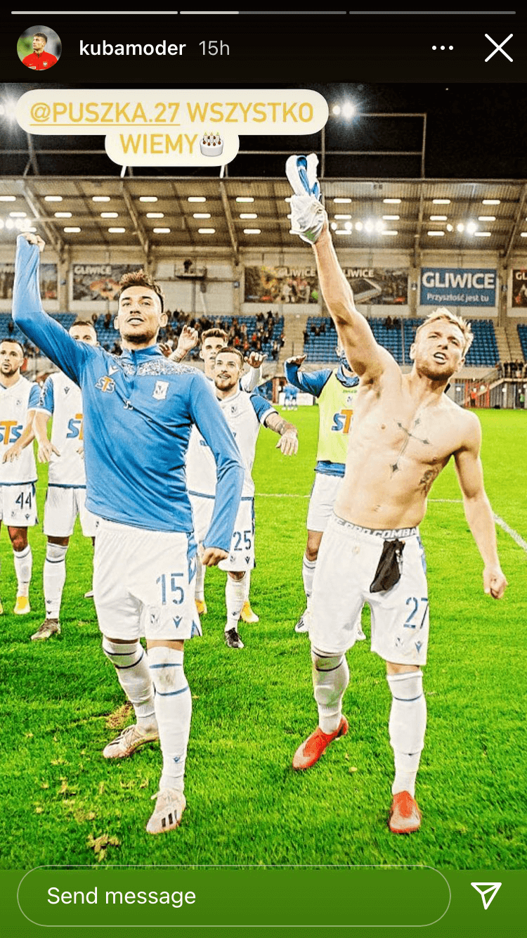 Jakub Moder wrzucił na swoje Instastories zdjęcie z Tymoteuszem Puchaczem, podpisał „@PUSZKA.27 WSZYSTKO WIEMY” oraz dorzucił emotikonkę tortu. Być może nowy selekcjoner otworzy obrońcy Kolejorza drzwi do reprezentacji, jednak pojawia się pytanie czy 22-latek udowodni, że warto na niego stawiać?